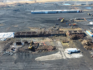 December 2019 - View looking North: Sheet steel is folded several times into manageable sections, then loaded into the roll-off containers. All steel is inspected by the EPA designee before loading into the container.