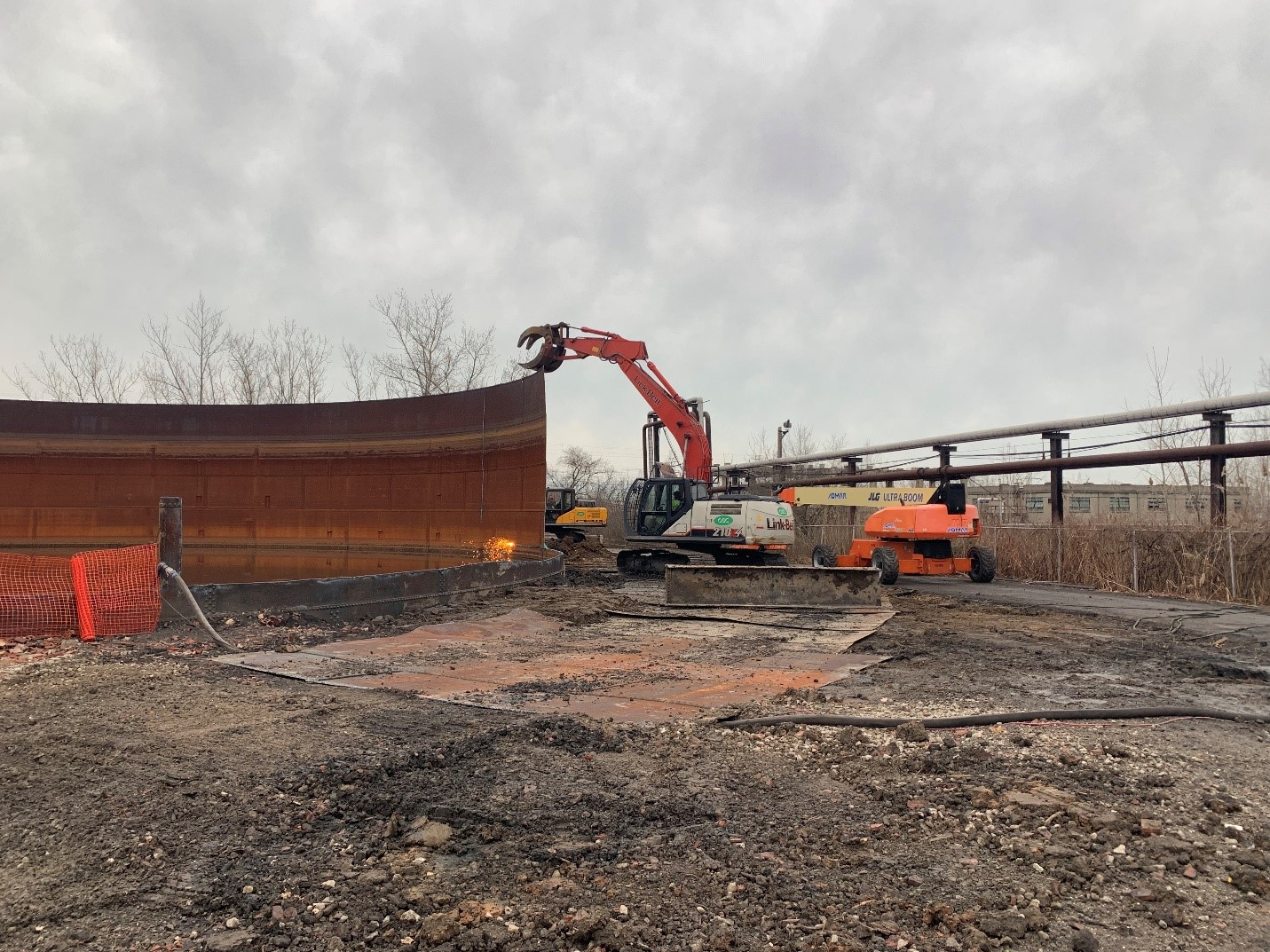 November 2019 - Site 108 - view looking northeast. Cutting and removal of Tank 2 sidewall.