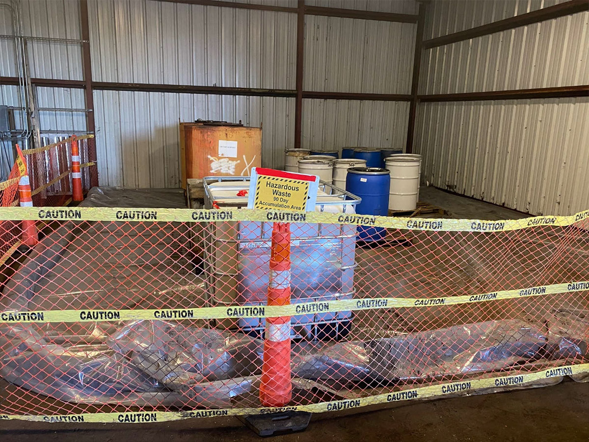 December 2019 - View looking west: Drums filled with mixed waste (asbestos and K142) loaded for disposal transport.