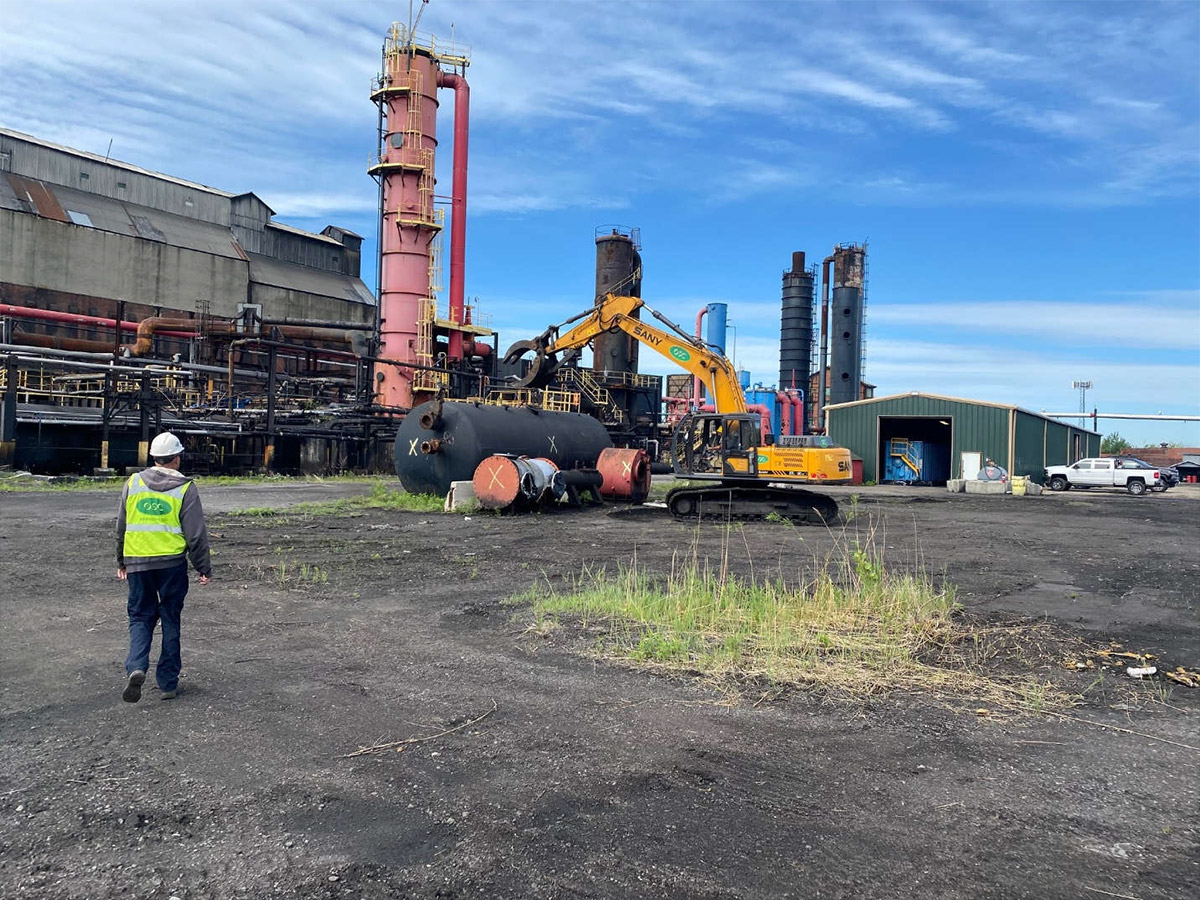 October 2019 - Site 108 - view looking northeast. Grapple can be seen holding the steel in place, while the shear attachment cuts the steel.